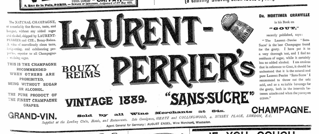 Until that point, the only advertisements in the British press were small, text-based (closer to today’s small ads than anything we would recognise as display advertising) and gave only the merest details of brand name, price and stockist. Nothing about the wine itself. Not so, the Sans Sucre.